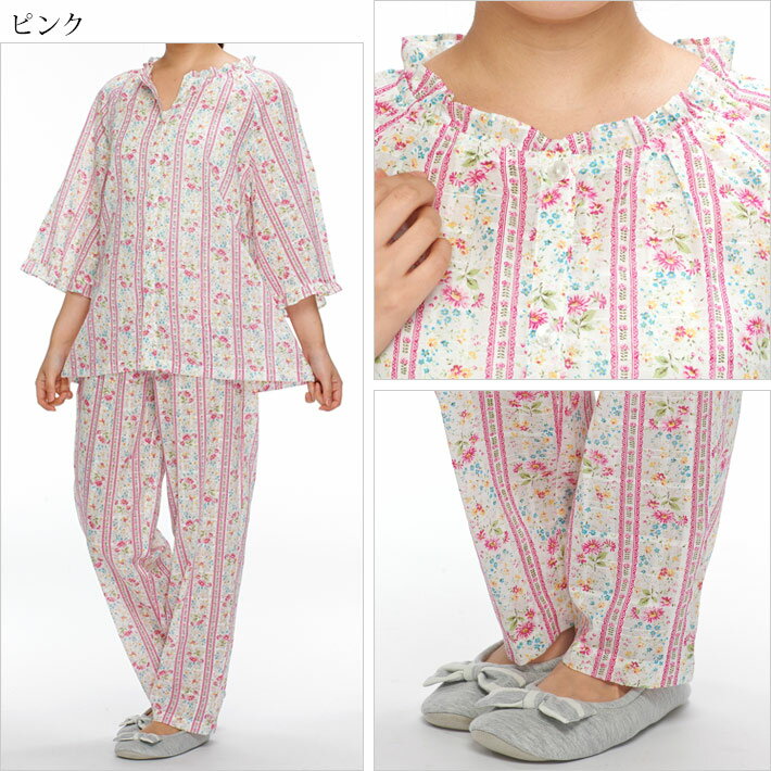 メーカー希望小売価格はメーカーサイトに基づいて掲載していますボイルドビー 花柄ストライプ7分袖パジャマ 着脱しやすい前開き全開タイプのパジャマです。