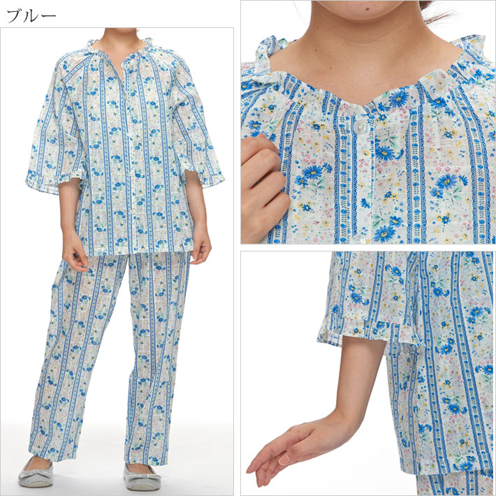 全体的に清涼感があり、春夏に着ていただきたいパジャマです。